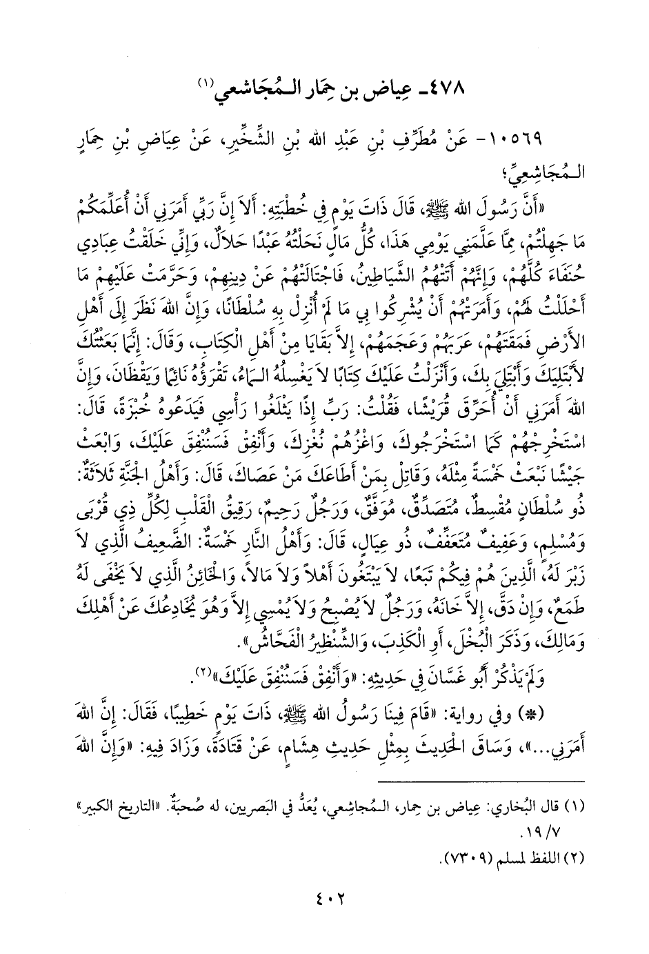 (¬١) قال البخاري: عياض بن حمار، المجاشعي، يعد في البصريين، له صحبة. «التاريخ الكبير» ٧/ ١٩.
