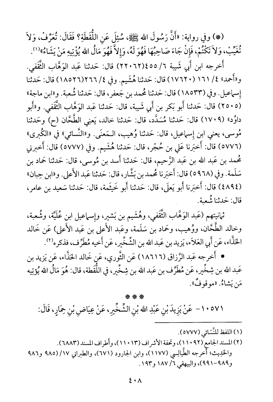 ثمانيتهم (عبد الوَهَّاب الثقفي، وهُشيم بن بشير، وإسماعيل ابن عُلَية، وشعبة، وخالد الطحان، ووهيب، وحماد بن سلمة، وعبد الأعلى بن عبد الأعلى) عن خالد الحَذَّاء، عن أبي العلاء، يزيد بن عبد الله بن الشخير، عن أخيه مطرف، فذكره (¬١).