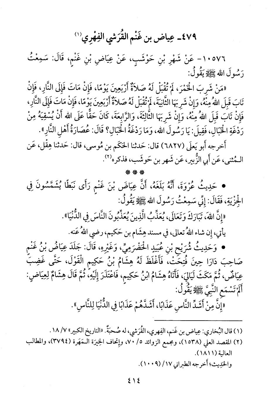 (¬١) قال البخاري: عياض بن غنم، الفهري، القرشي، له صحبة. «التاريخ الكبير» ٧/ ١٨.