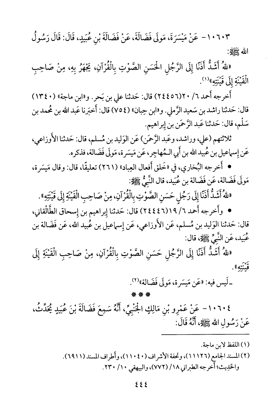 ١٠٦٠٣ - عن ميسرة مولى فضالة، عن فضالة بن عبيد، قال: قال رسول الله صَلى الله عَليه وسَلم: