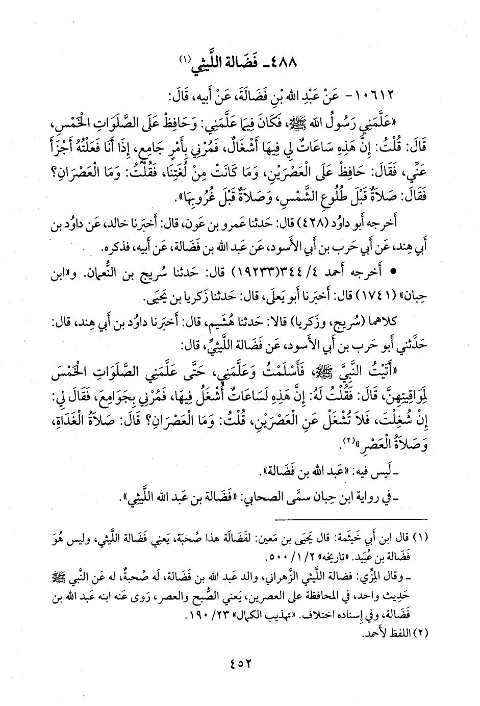 (¬٢) قال العلائي: ومن أعجب ما وقع في ذلك حديث فضالة الليثي، رضي الله عنه، حافظوا على الصلوات، وحافظوا على العصرين.