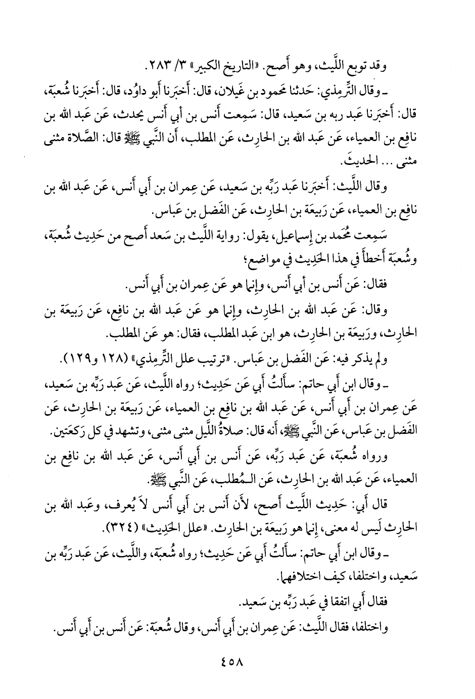 واختلفا، فقال الليث: عن الفضل بن العباس، وقال شعبة: عن المطلب، عن النبي صَلى الله عَليه وسَلم قال: الصلاة مثنى مثنى، الحديث.