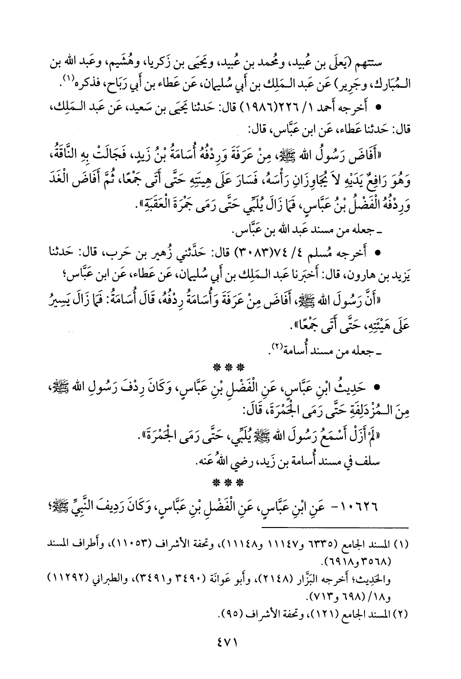 ١٠٦٢٦ - عن عبد الله بن عباس، عن الفضل بن عباس، وكان رديف النبي صَلى الله عَليه وسَلم؛
