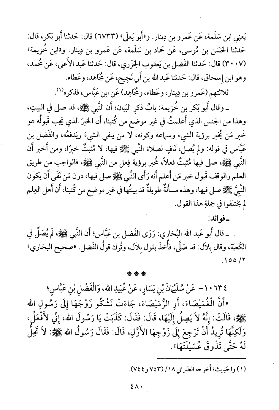 - قال أَبو عبد الله البخاري: روى الفضل بن عباس؛ أن النبي صَلى الله عَليه وسَلم لم يصل في الكعبة، وقال بلال: قد صلى، فأخذ بقول بلال، وترك قول الفضل. «صحيح البخاري» ٢/ ١٥٥.