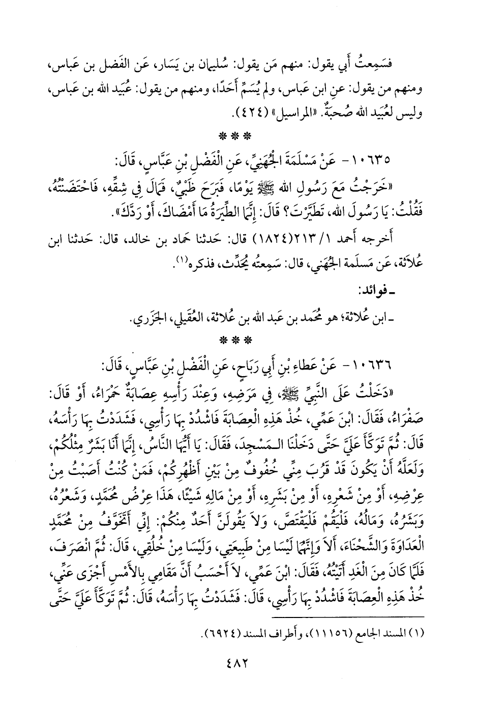 ١٠٦٣٥ - عن مسلمة الجهني، عن الفضل بن عباس، قال: