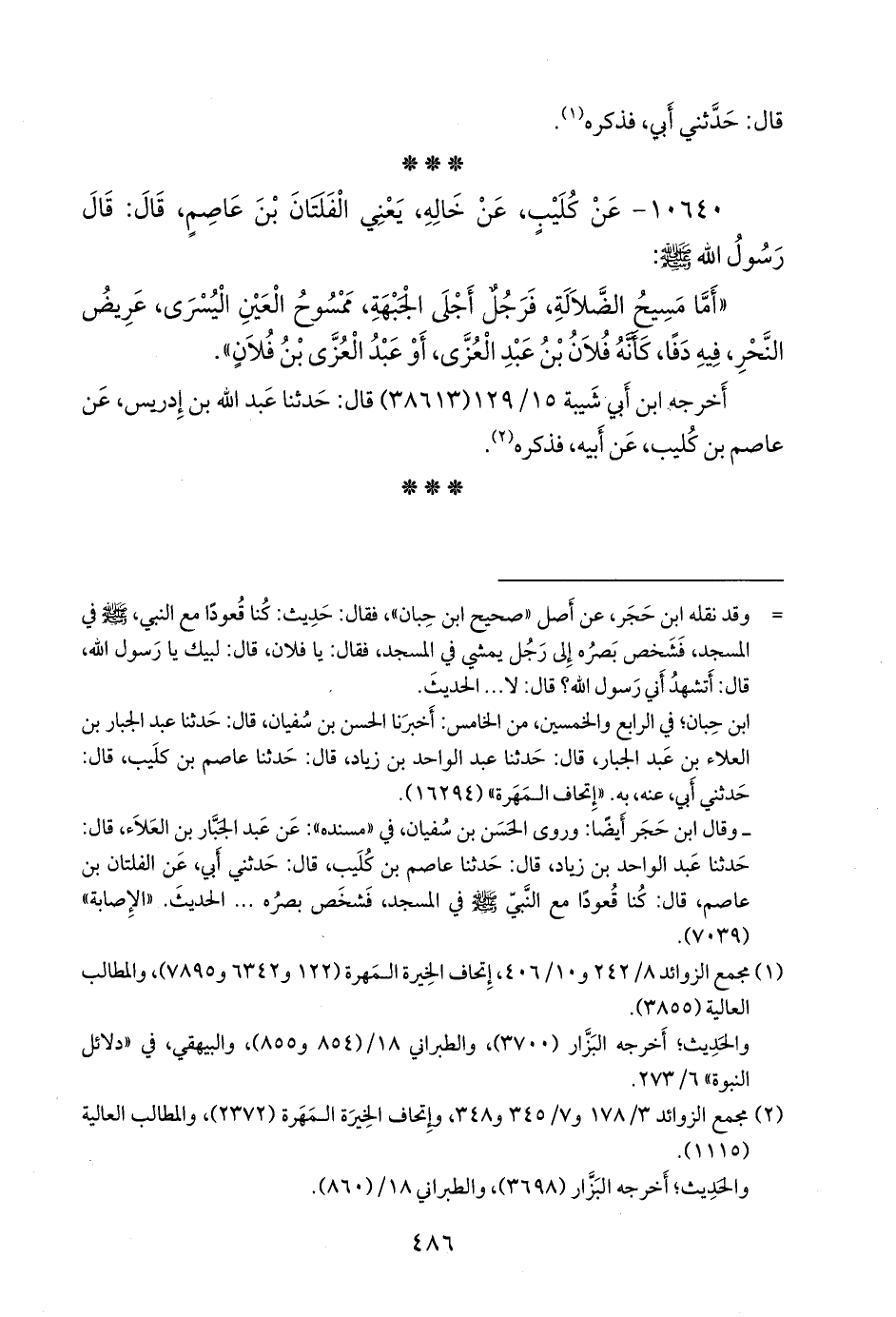 (¬١) مَجمَع الزوائد ٣/ ١٧٨ و ٧/ ٣٤٥ و ٣٤٨، وإتحاف الخِيرَة المَهَرة (٢٣٧٢)، والمطالب العالية (١١١٥).