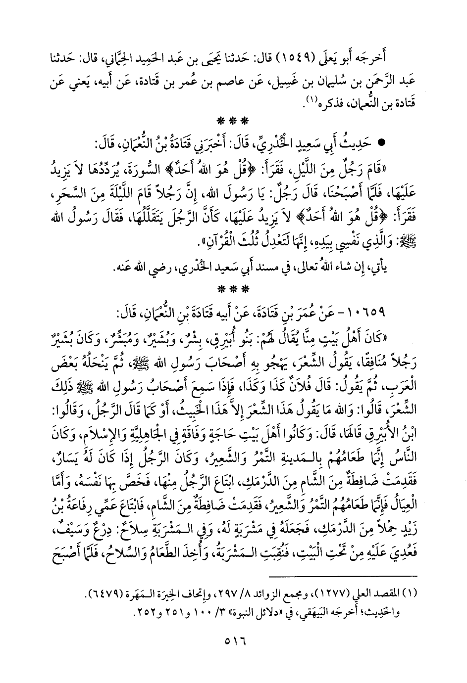١٠٦٥٩ - عن عمر بن قتادة، عن أبيه قتادة بن النعمان، قال: