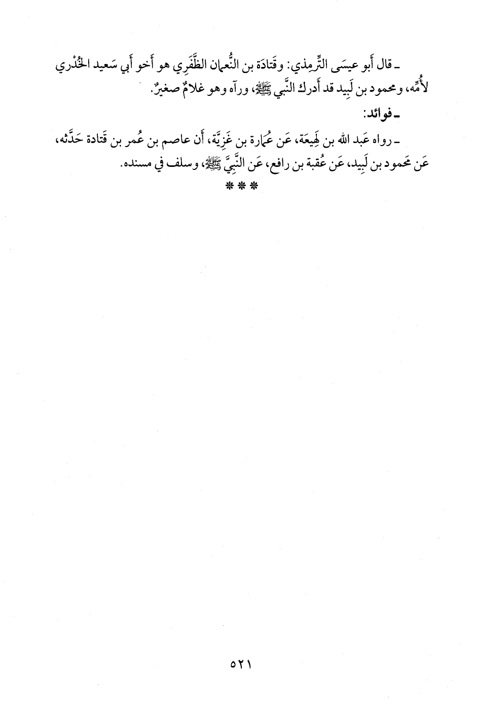 • رواه عبد الله بن لَهيعَة، عن عُمارة بن غَزِيَّة، عن عاصم بن عمر بن قتادة، عن محمود بن لَبيد، عن عقبة بن رافع، عن النبي صَلى الله عَليه وسَلم، وسلف في مسنده برقم (٩٣٠٢).