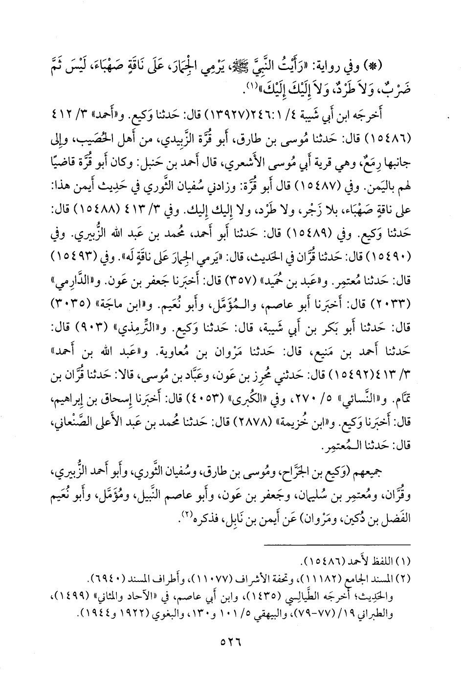 و «عبد الله بن أحمد» ٣/ ٤١٣ (١٥٤٩٢) قال: حدثني مُحرِز بن عون، وعباد بن موسى، قالا: حدثنا قران بن تمام. و «النَّسَائي» ٥/ ٢٧٠، وفي «الكبرى» (٤٠٥٣) قال: أخبرنا إسحاق بن إبراهيم، قال: أخبرنا وكيع. و «ابن خزيمة» (٢٨٧٨) قال: حدثنا محمد بن عبد الأعلى الصَّنْعاني، قال: حدثنا المُعتَمِر.