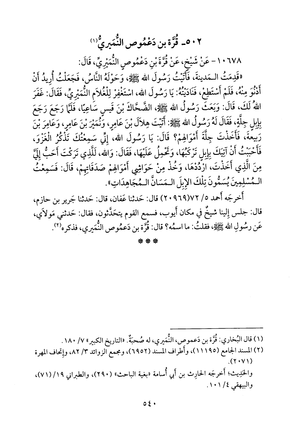 (¬١) قال البخاري: قرة بن دعموص، النميري، له صحبة. «التاريخ الكبير» ٧/ ١٨٠.