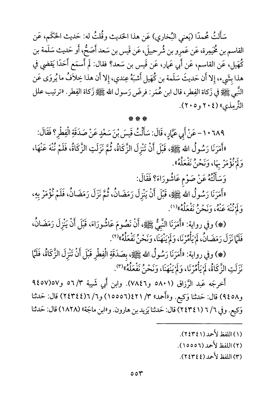١٠٦٨٩ - عن أبي عمار، قال: سألت قيس بن سعد عن صدقة الفطر؟ فقال: