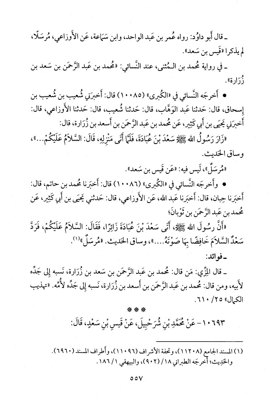 - في رواية محمد بن المثنى، عند النَّسَائي: «محمد بن عبد الرَّحمَن بن سعد بن زُرارة».