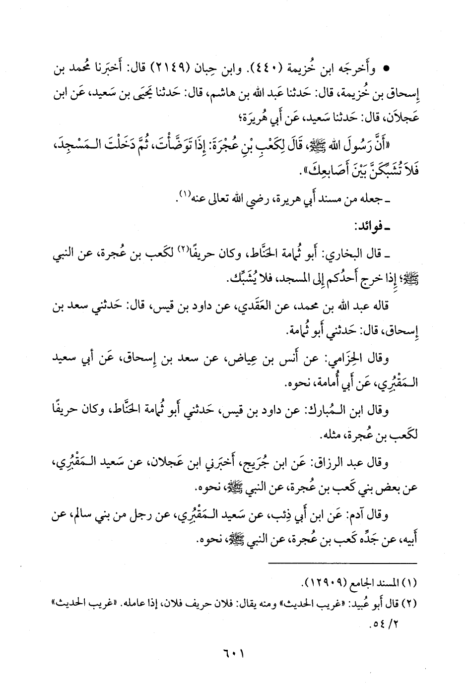وقال ابن المبارك: عن داود بن قيس، قال: حدثني أَبو ثمامة الحناط، وكان حريفا لكعب بن عجرة، مثله.