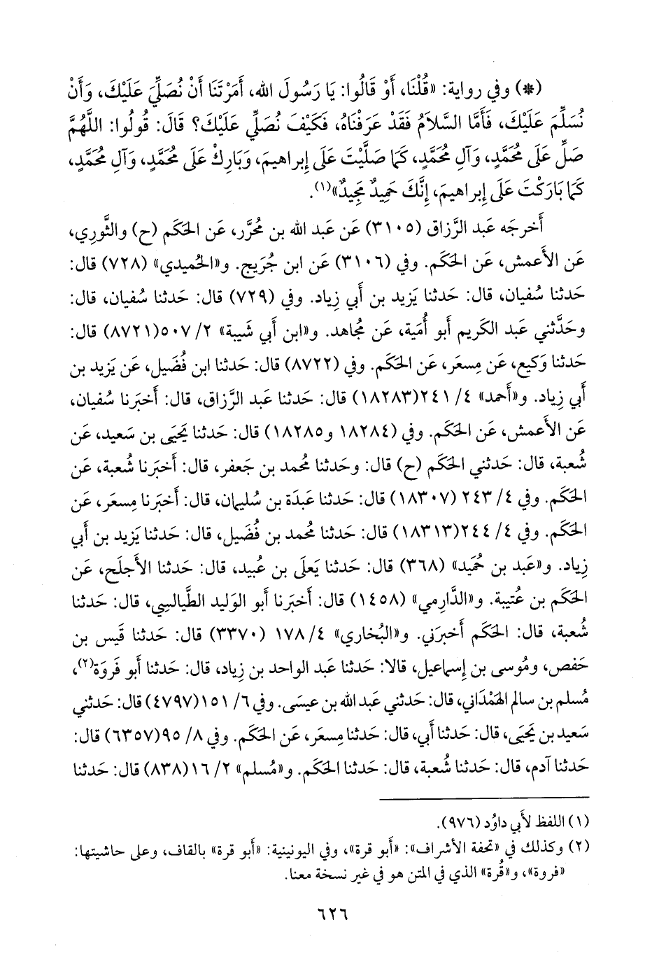 أخرجه عبد الرزاق (٣١٠٥) عن عبد الله بن مُحَرَّر، عن الحكم (ح) والثوري، عن الأعمش، عن الحكم. وفي (٣١٠٦) عن ابن جُريج. و «الحميدي» (٧٢٨) قال: حدثنا سفيان، قال: حدثنا يزيد بن أبي زياد. وفي (٧٢٩) قال: حدثنا سفيان، قال: وحدثني عبد الكريم أَبو أمية، عن مجاهد. و «ابن أبي شيبة» (٨٧٢١) قال: حدثنا وكيع، عن مِسعَر، عن الحكم. وفي (٨٧٢٢) قال: حدثنا ابن فضيل، عن يزيد بن أبي زياد. و «أحمد» ٤/ ٢٤١ (١٨٢٨٣) قال: حدثنا عبد الرزاق، قال: أخبرنا سفيان، عن الأعمش، عن الحكم. وفي (١٨٢٨٤ و ١٨٢٨٥) قال: حدثنا يحيى بن سعيد، عن شعبة، قال: حدثني الحكم (ح) قال: وحدثنا محمد بن جعفر، قال: أخبرنا شعبة، عن الحكم. وفي ٤/ ٢٤٣ (١٨٣٠٧) قال: حدثنا عَبدة بن سليمان، قال: أخبرنا مسعر، عن الحكم. وفي ٤/ ٢٤٤ (١٨٣١٣) قال: حدثنا محمد بن فضيل، قال: حدثنا يزيد بن أبي زياد. و «عَبد بن حُميد» (٣٦٨) قال: حدثنا يَعلى بن عبيد، قال: حدثنا الأجلح، عن الحكم بن عتيبة. و «الدَّارِمي» (١٤٥٨) قال: أخبرنا أَبو الوليد الطيالسي، قال: حدثنا شعبة، قال: الحكم أخبرني. و «البخاري» ٤/ ١٧٨ (٣٣٧٠) قال: حدثنا قيس بن حفص، وموسى بن إسماعيل، قالا: حدثنا عبد الواحد بن زياد، قال: حدثنا أَبو فروة (¬١)، مسلم بن سالم الهمداني، قال: حدثني عبد الله بن عيسى. وفي ٦/ ١٥١ (٤٧٩٧) قال: حدثني سعيد بن يحيى، قال: حدثنا أبي، قال: حدثنا مسعر، عن الحكم. وفي ٨/ ٩٥ (٦٣٥٧) قال: حدثنا آدم، قال: حدثنا شعبة، قال: حدثنا الحكم. و «مسلم» ٢/ ١٦ (٨٣٨) قال: حدثنا