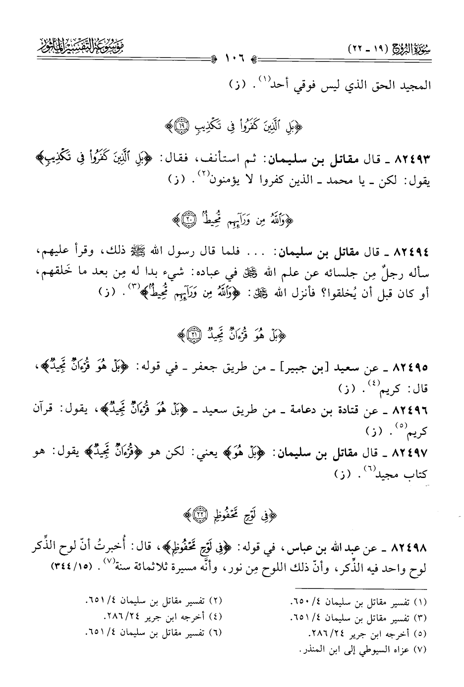 ٨٢٤٩٧ - قال مقاتل بن سليمان: {بَلْ هُوَ} يعني: لكن هو {قُرْآنٌ مَجِيدٌ} يقول: هو كتاب مجيد (¬٦). (ز)