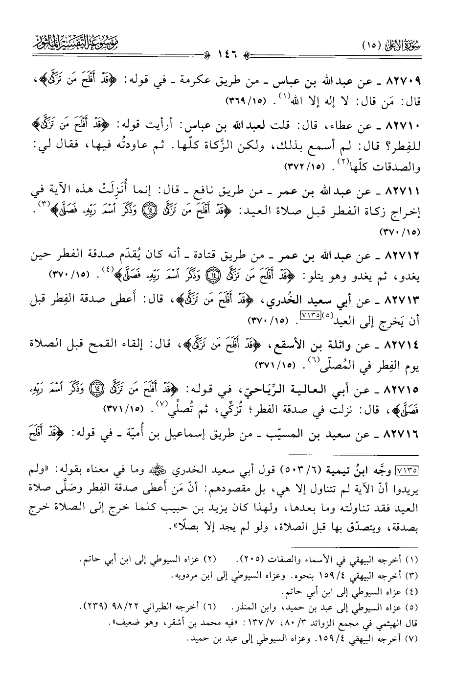 ٨٢٧١٣ - عن أبي سعيد الخُدري، {قَدْ أفْلَحَ مَن تَزَكّى}، قال: أعطى صدقة الفِطر قبل أن يَخرج إلى العيد (¬٥) [٧١٣٥]. (١٥/ ٣٧٠)