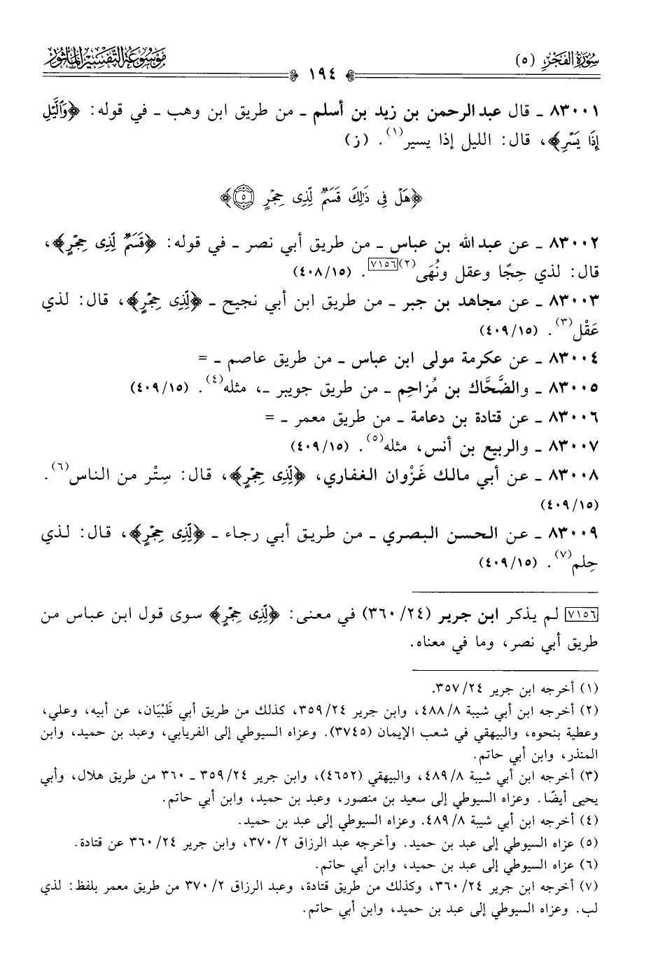 [٧١٥٦] لم يذكر ابنُ جرير (٢٤/ ٣٦٠) في معنى: {لِذِي حِجْرٍ} سوى قول ابن عباس من طريق أبي نصر، وما في معناه.