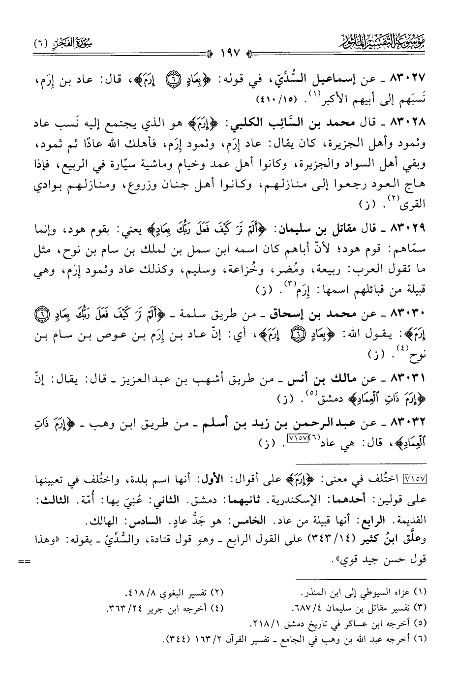 ٨٣٠٣٢ - عن عبد الرحمن بن زيد بن أسلم -من طريق ابن وهب- {إرَمَ ذاتِ العِمادِ}، قال: هي عاد (¬٦) [٧١٥٧]. (ز)