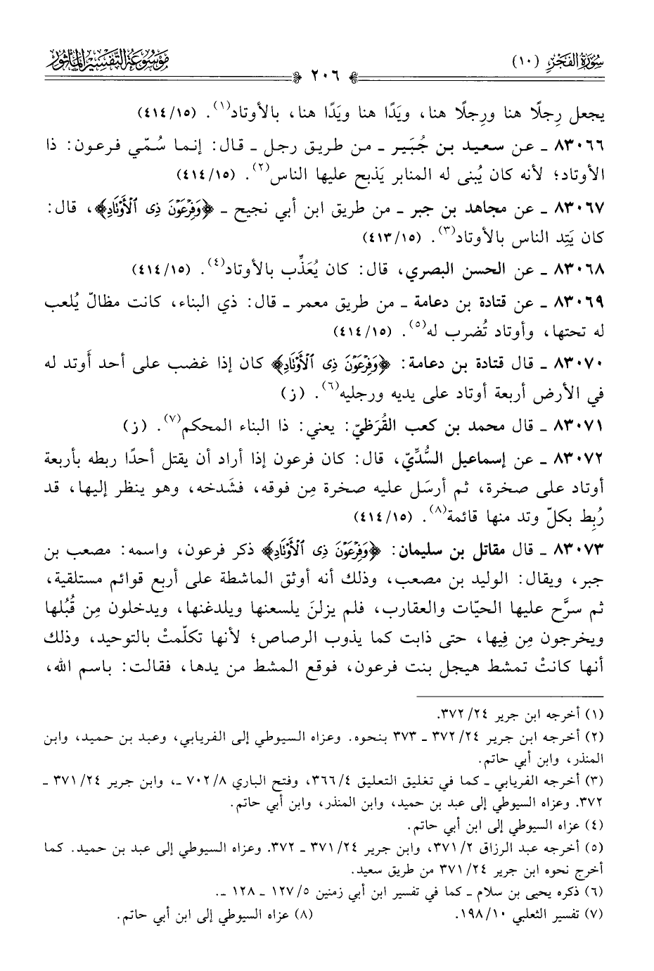 ٨٣٠٦٧ - عن مجاهد بن جبر -من طريق ابن أبي نجيح- {وفِرْعَوْنَ ذِي الأَوْتادِ}، قال: كان يَتِد الناس بالأوتاد (¬٣). (١٥/ ٤١٣)