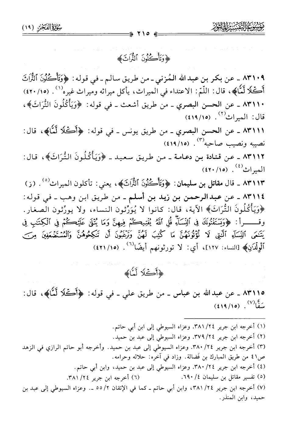 ٨٣١١٥ - عن عبد الله بن عباس -من طريق علي- في قوله: {أكْلًا لَمًّا}، قال: سَفًّا (¬٧). (١٥/ ٤١٩)