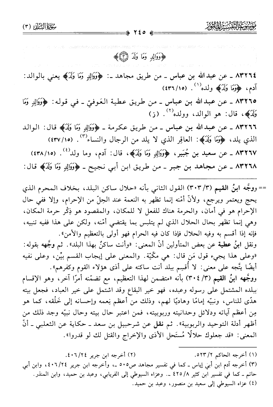 ٨٣٢٦٧ - عن سعيد بن جُبَير، {ووالِدٍ وما ولَدَ}، قال: آدم، وما ولد (¬٤). (١٥/ ٤٣٨)