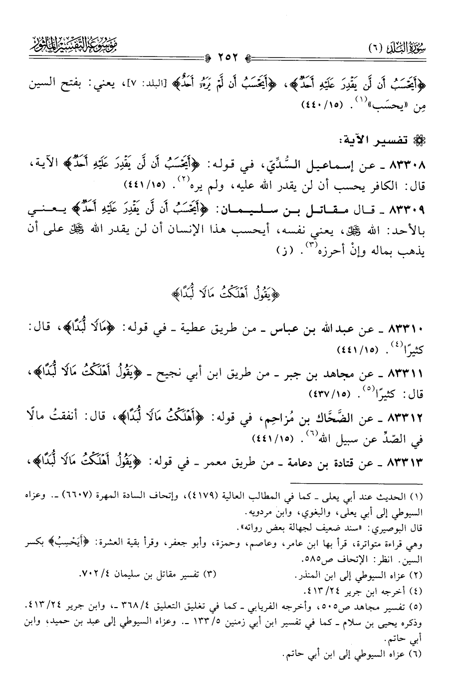 ٨٣٣١١ - عن مجاهد بن جبر -من طريق ابن أبي نجيح- {يَقُولُ أهْلَكْتُ مالًا لُبَدًا}، قال: كثيرًا (¬٥). (١٥/ ٤٣٧)