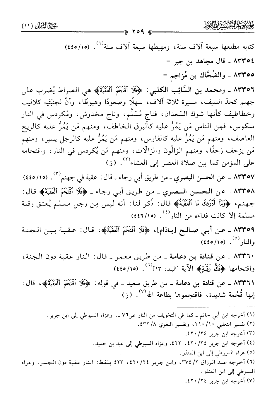 ٨٣٣٥٩ - عن أبي صالح [باذام]، {فَلا اقْتَحَمَ العَقَبَةَ}، قال: عقبة بين الجنة والنار (¬٥). (١٥/ ٤٤٥)