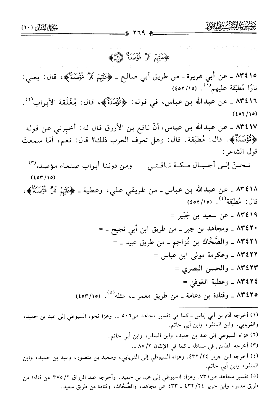 ٨٣٤١٥ - عن أبي هريرة -من طريق أبي صالح- {عَلَيْهِمْ نارٌ مُؤْصَدَةٌ}، قال: يعني: نارًا مُطبَقة عليهم (¬١). (١٥/ ٤٥٢)