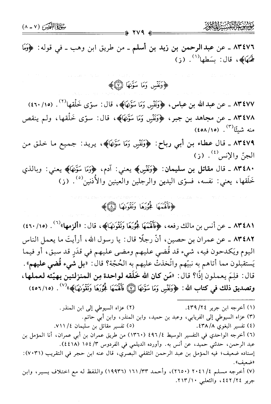 ٨٣٤٨١ - عن أنس بن مالك رفعه، {فَأَلْهَمَها فُجُورَها وتَقْواها}، قال: «ألزمها» (¬٦). (١٥/ ٤٦٠)