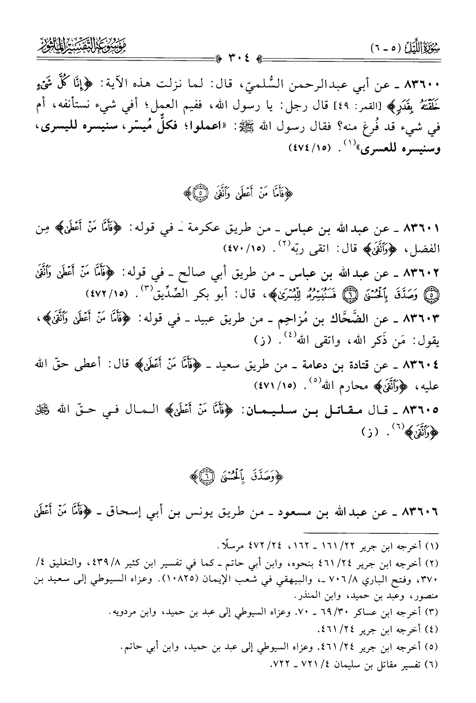 ٨٣٦٠٥ - قال مقاتل بن سليمان: {فَأَمّا مَن أعْطى} المال في حقّ الله - عز وجل - {واتَّقى} (¬٦). (ز)