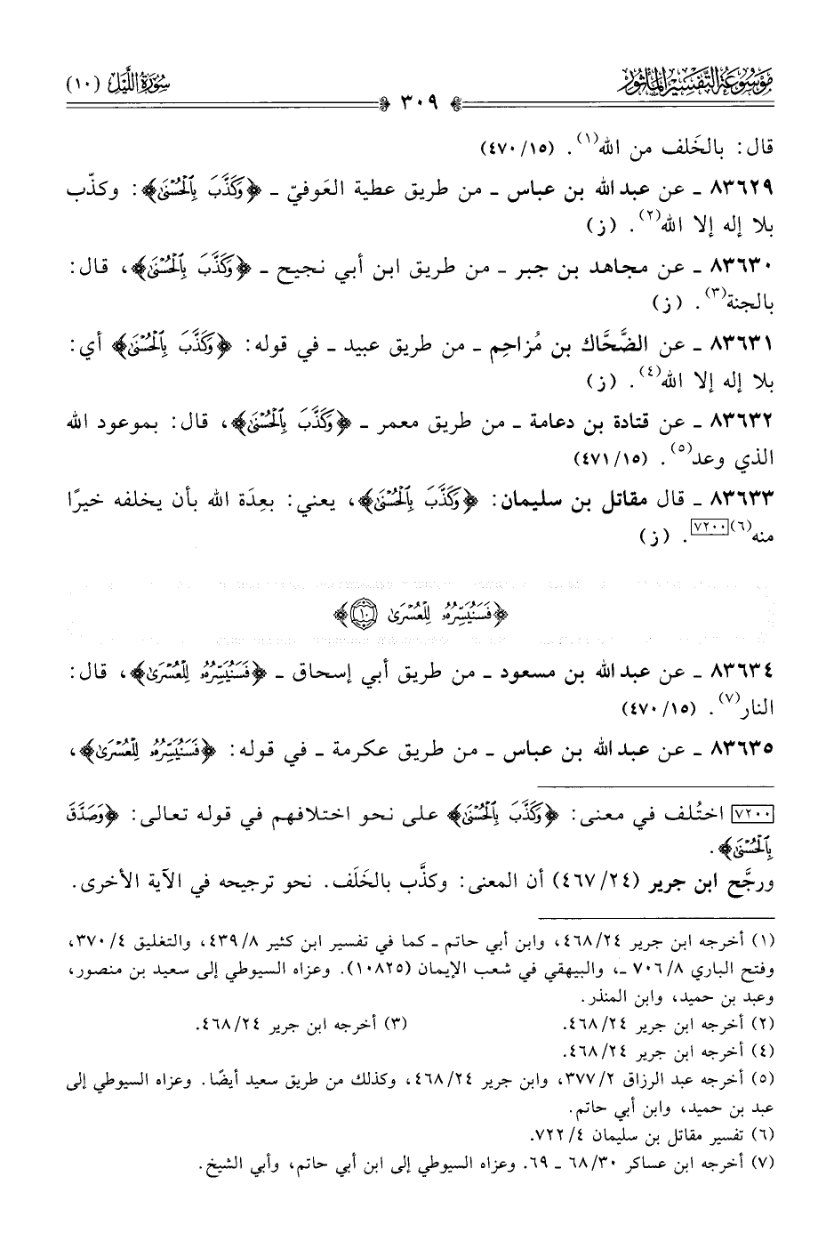 ٨٣٦٣٣ - قال مقاتل بن سليمان: {وكَذَّبَ بِالحُسْنى}، يعني: بعِدَة الله بأن يخلفه خيرًا منه (¬٦) [٧٢٠٠]. (ز)
