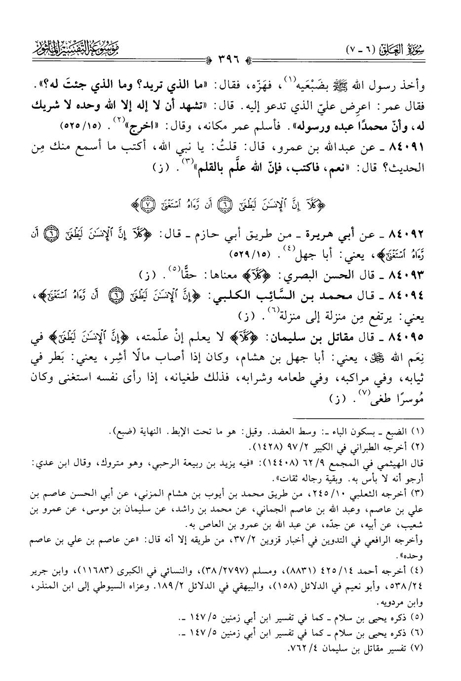 ٨٤٠٩٢ - عن أبي هريرة -من طريق أبي حازم- قال: {كَلّا إنَّ الإنْسانَ لَيَطْغى أنْ رَآهُ اسْتَغْنى}، يعني: أبا جهل (¬٤). (١٥/ ٥٢٩)