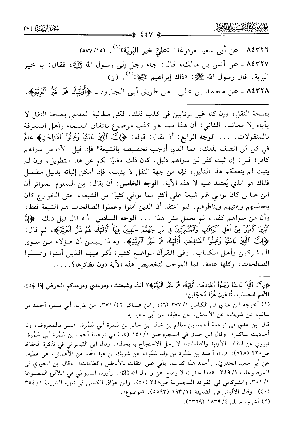 ٨٤٣٢٨ - عن محمد بن علي -من طريق أبي الجارود- {أُولَئِكَ هُمْ خَيْرُ البَرِيَّةِ}،
