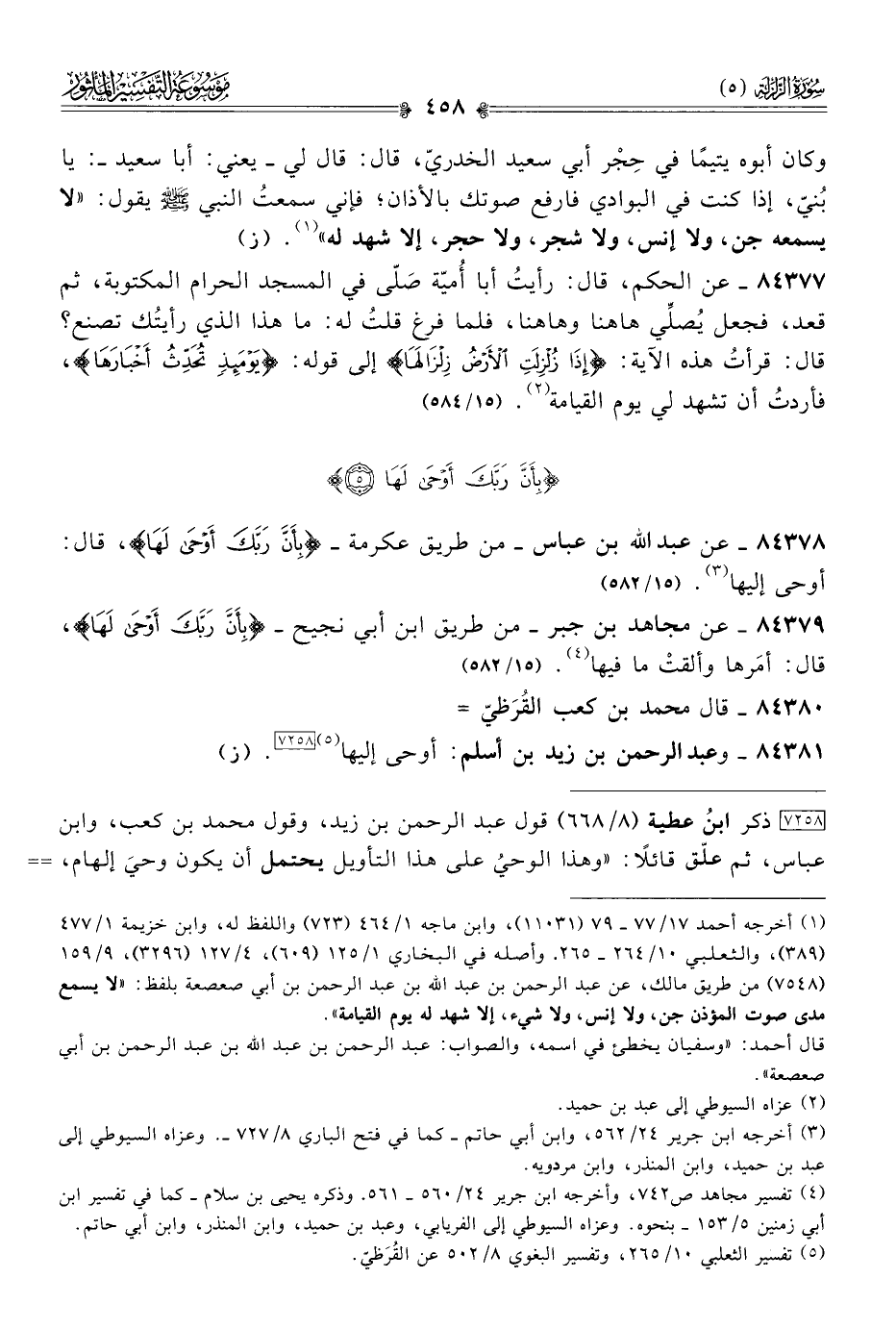 ٨٤٣٨١ - وعبد الرحمن بن زيد بن أسلم: أوحى إليها (¬٥) [٧٢٥٨]. (ز)