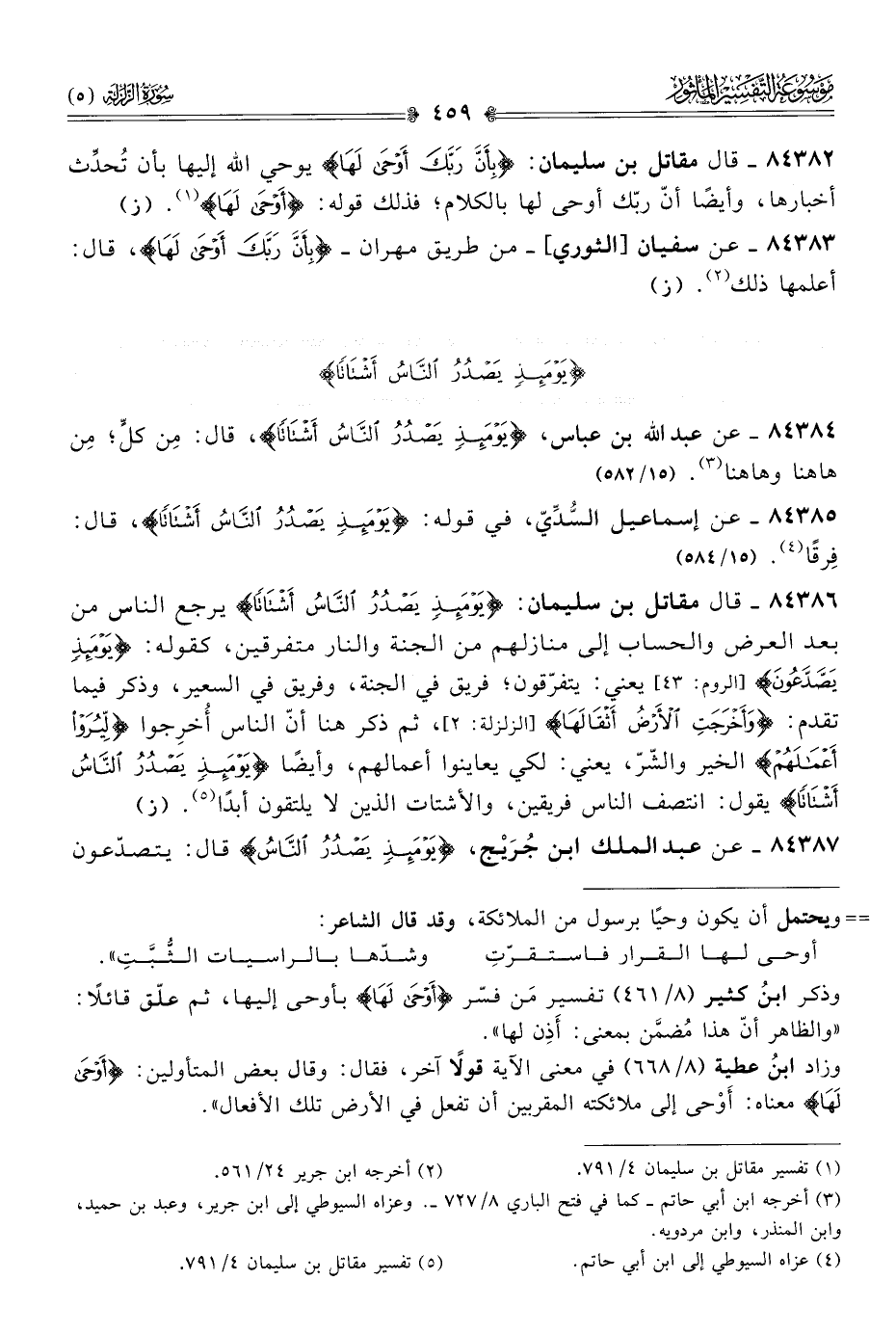 ٨٤٣٨٣ - عن سفيان [الثوري]-من طريق مهران- {بِأَنَّ رَبَّكَ أوْحى لَها}، قال: أعلمها ذلك (¬٢). (ز)