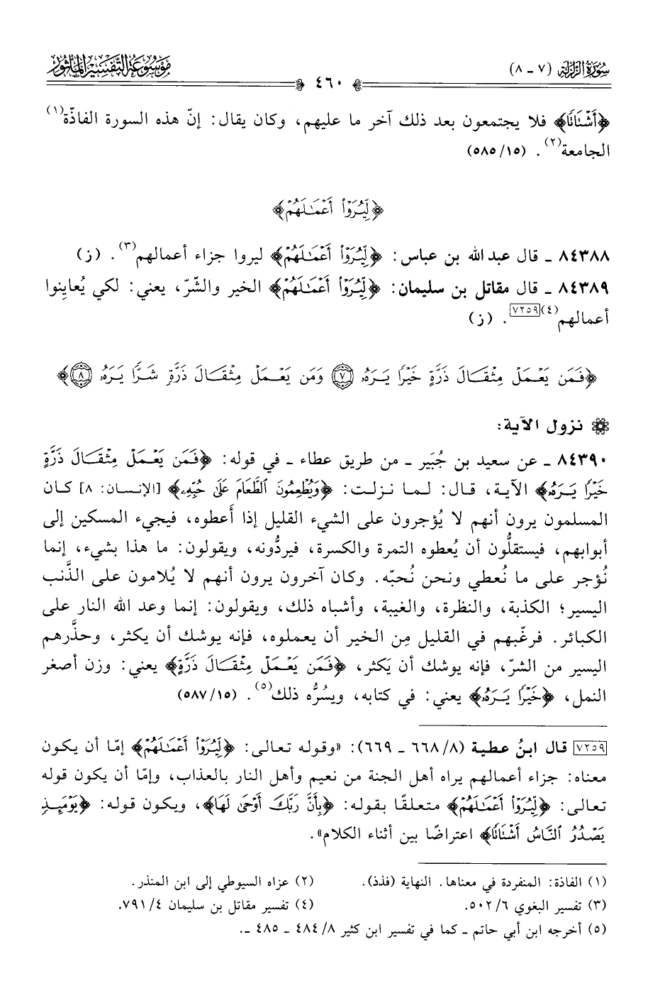 ٨٤٣٨٨ - قال عبد الله بن عباس: {لِيُرَوْا أعْمالَهُمْ} ليروا جزاء أعمالهم (¬٣). (ز)