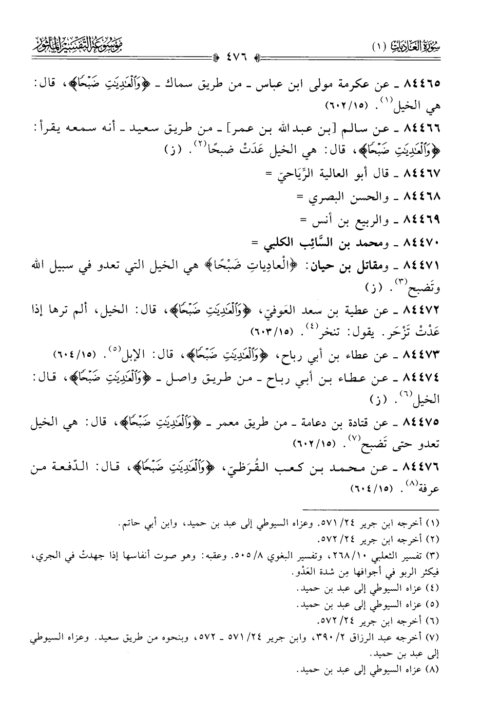 ٨٤٤٧٣ - عن عطاء بن أبي رباح، {والعادِياتِ ضَبْحًا}، قال: الإبل (¬٥). (١٥/ ٦٠٤)