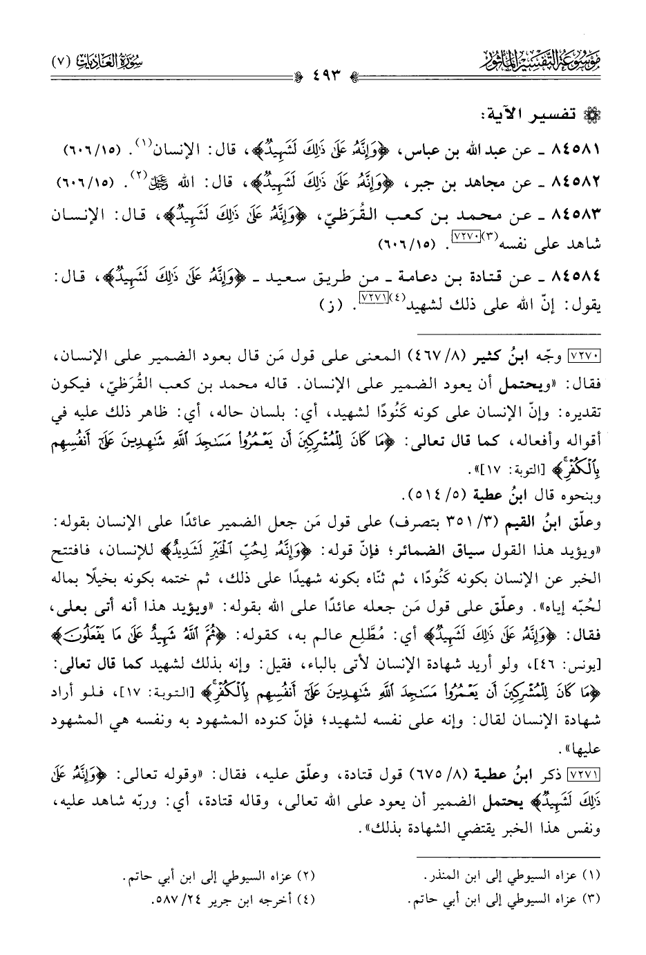 ٨٤٥٨٤ - عن قتادة بن دعامة -من طريق سعيد- {وإنَّهُ عَلى ذَلِكَ لَشَهِيدٌ}، قال: يقول: إنّ الله على ذلك لشهيد (¬٤) [٧٢٧١]. (ز)