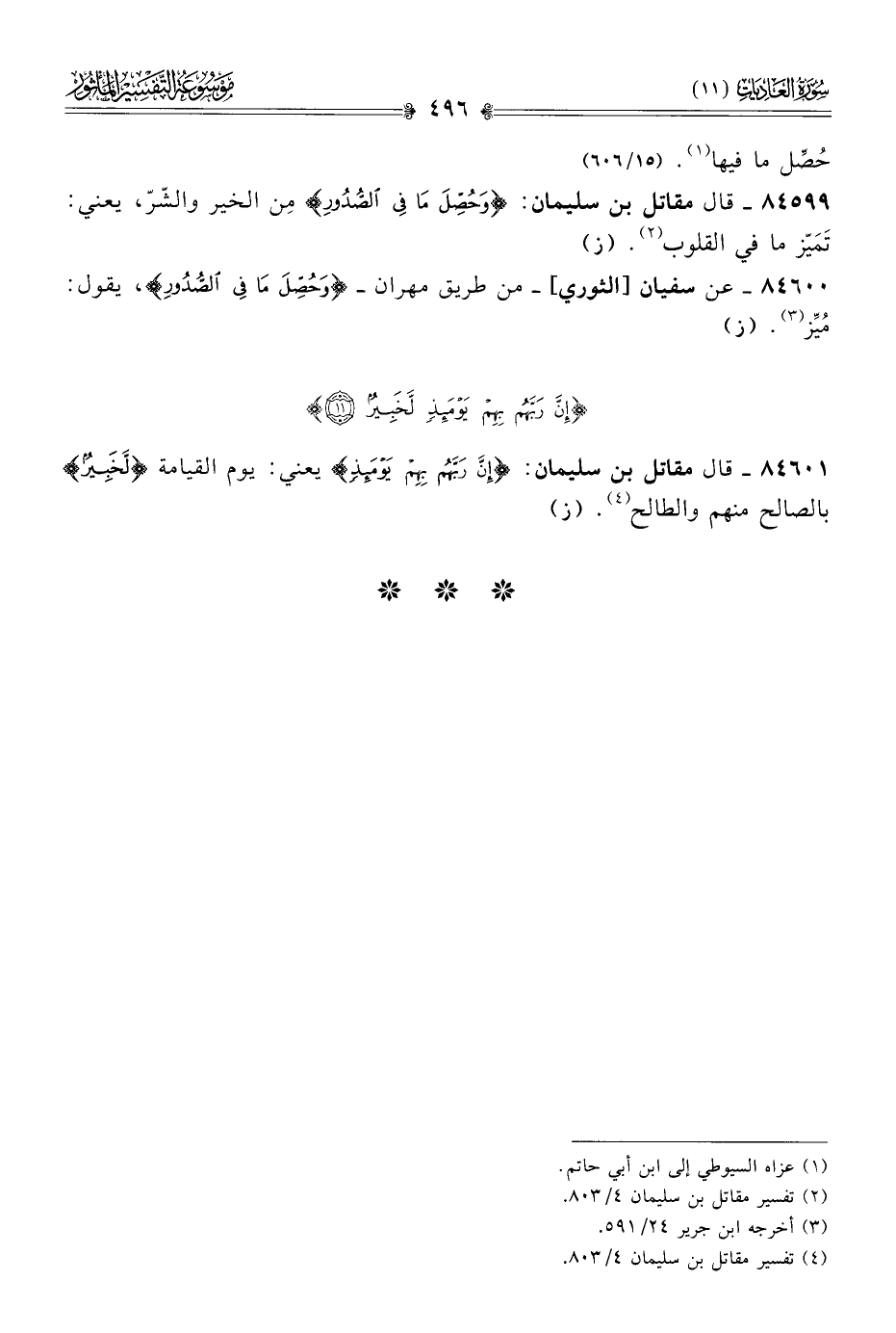 ٨٤٦٠٠ - عن سفيان [الثوري]-من طريق مهران- {وحُصِّلَ ما فِي الصُّدُورِ}، يقول: مُيِّز (¬٣). (ز)