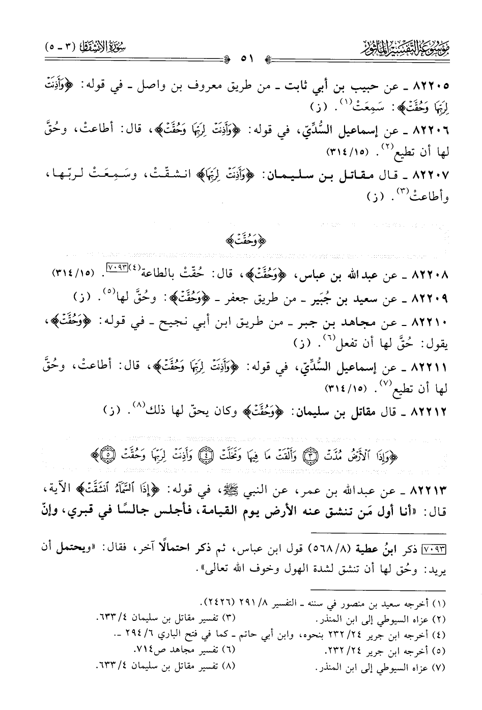 ٨٢٢٠٨ - عن عبد الله بن عباس، {وحُقَّتْ}، قال: حُقّتْ بالطاعة (¬٤) [٧٠٩٣]. (١٥/ ٣١٤)