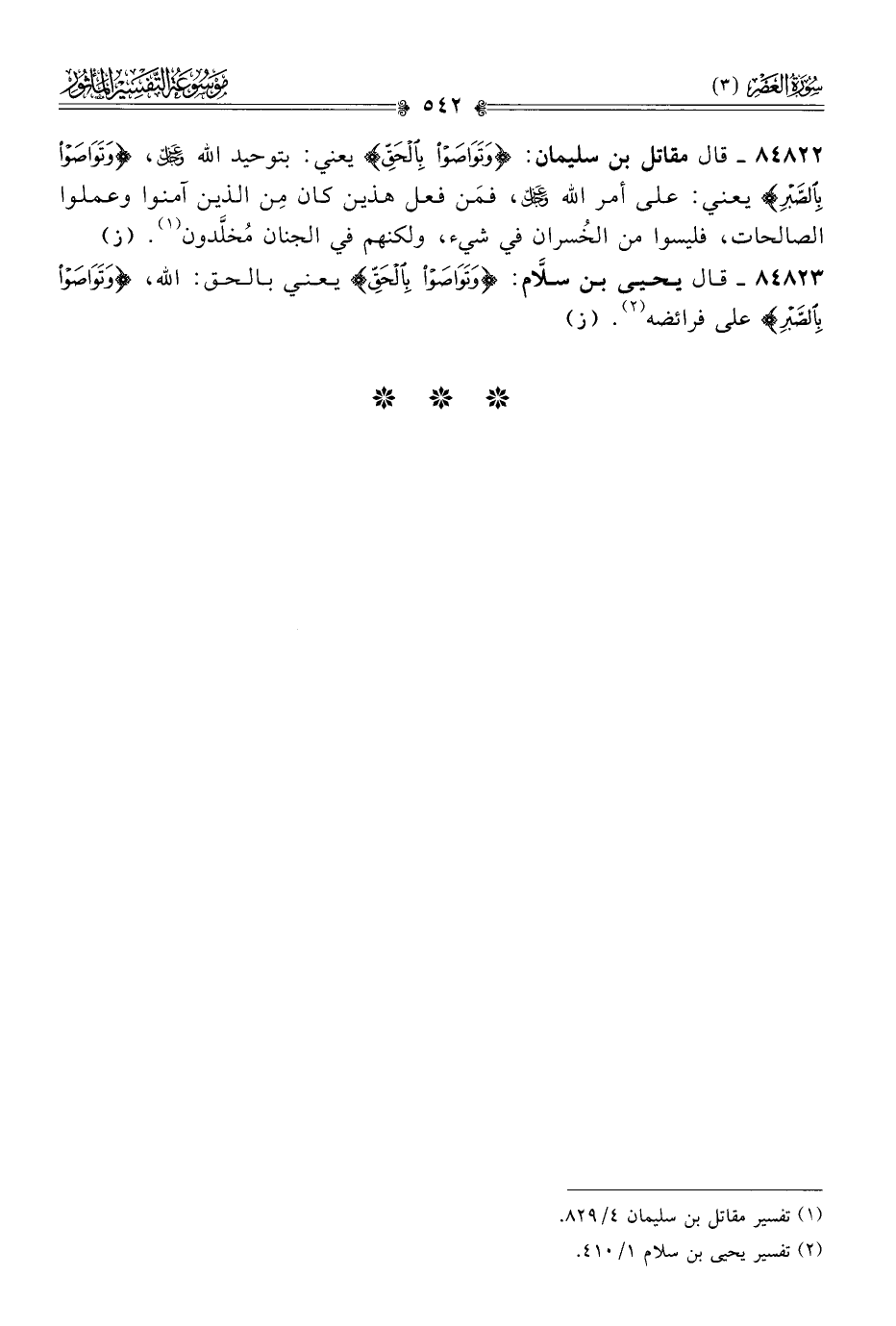 ٨٤٨٢٣ - قال يحيى بن سلّام: {وتواصوا بالحق} يعني بالحق: الله، {وتواصوا بالصبر} على فرائضه (¬٢). (ز)