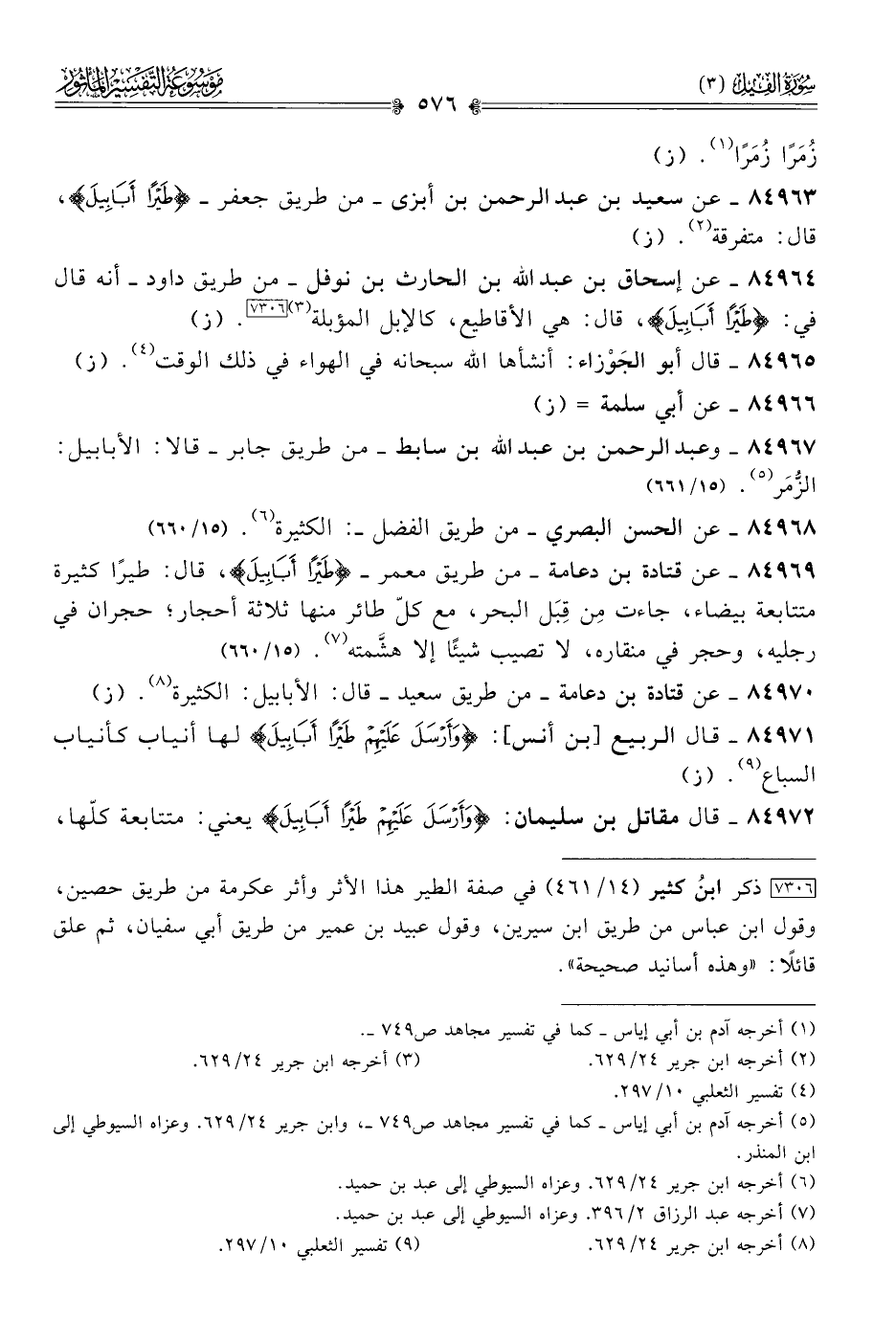٨٤٩٦٧ - وعبد الرحمن بن عبد الله بن سابط -من طريق جابر- قالا: الأبابيل: الزُّمَر (¬٥). (١٥/ ٦٦١)