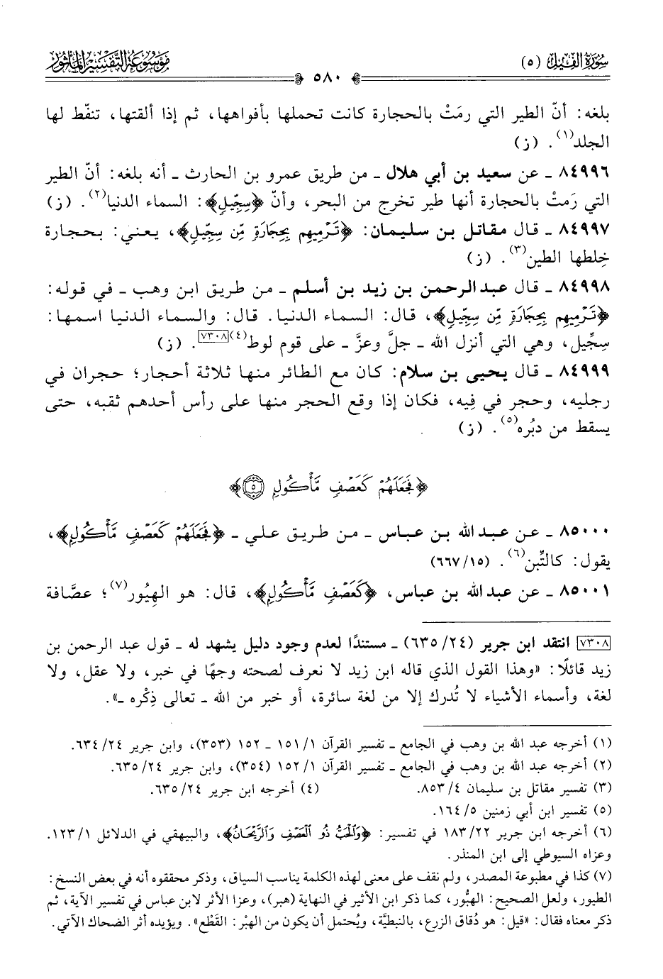 ٨٥٠٠٠ - عن عبد الله بن عباس -من طريق علي- {فَجَعَلَهُمْ كَعَصْفٍ مَأْكُولٍ}، يقول: كالتِّبن (¬٦). (١٥/ ٦٦٧)