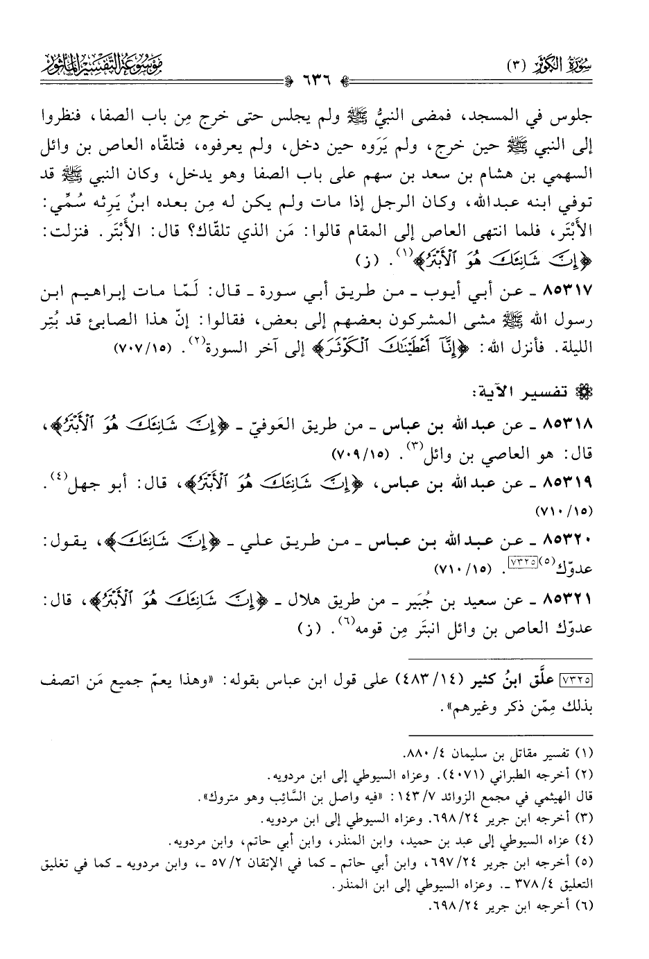 [٧٣٢٥] علَّق ابنُ كثير (١٤/ ٤٨٣) على قول ابن عباس بقوله: «وهذا يعمّ جميع مَن اتصف بذلك مِمّن ذكر وغيرهم».
