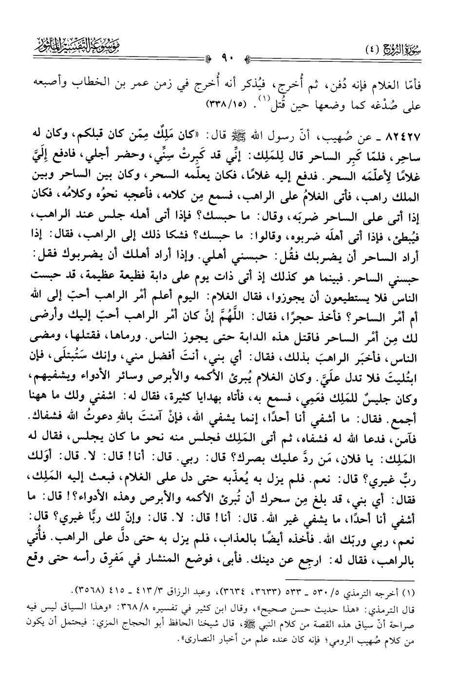 قال الترمذي: «هذا حديث حسن صحيح»، وقال ابن كثير في تفسيره ٨/ ٣٦٨: «وهذا السياق ليس فيه صراحة أنّ سياق هذه القصة من كلام النبي - صلى الله عليه وسلم -، قال شيخنا الحافظ أبو الحجاج المزي: فيحتمل أن يكون من كلام صُهيب الرومي؛ فإنه كان عنده علم من أخبار النصارى».