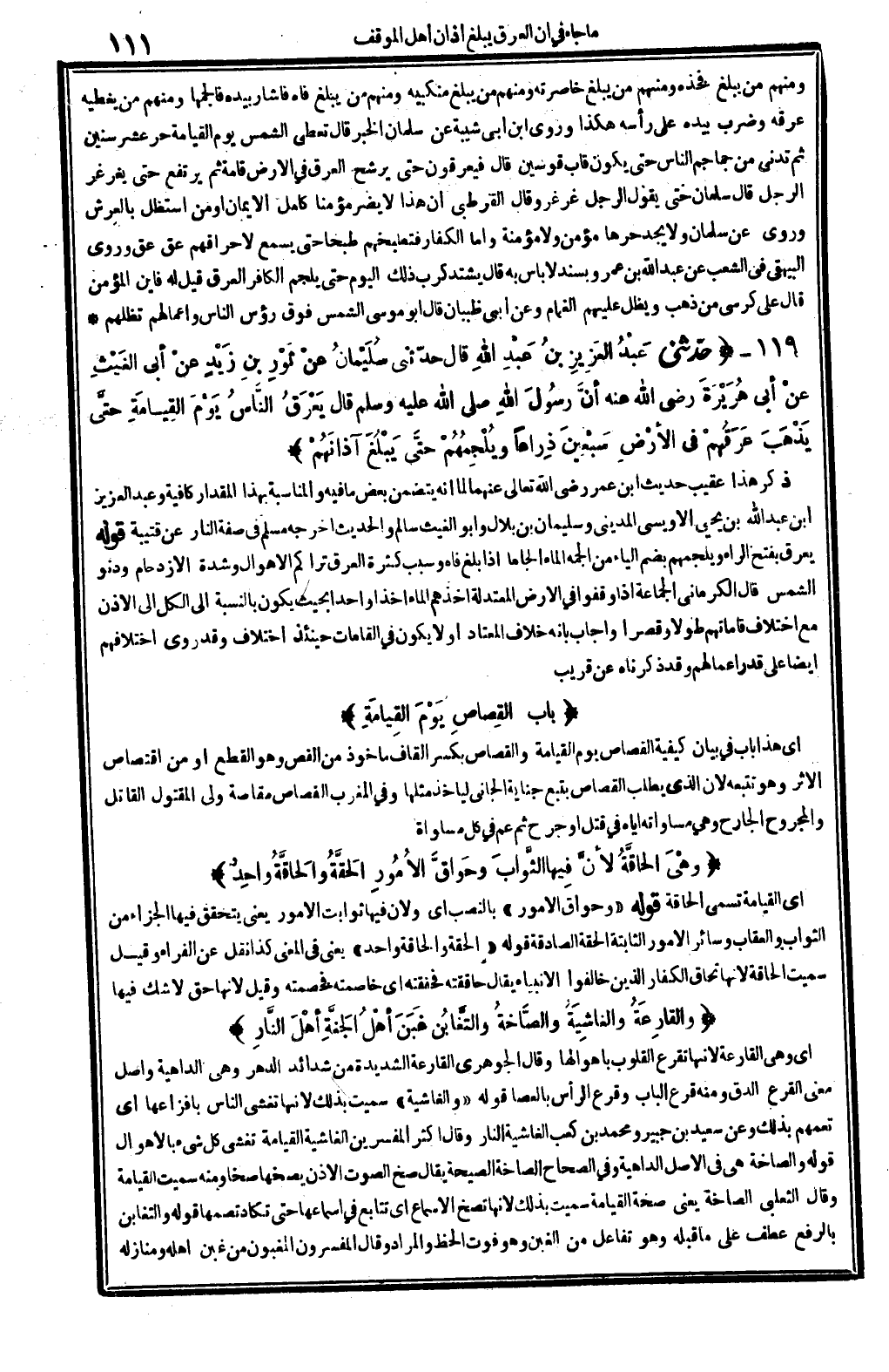 2356 - حدّثني عَبْدُ العَزِيزِ بنُ عَبْدِ الله قَالَ: حدّثني سُلَيْمانُ عنْ ثَوْرِ بنِ زَيْدٍ عنْ أبي الغَيْثِ عنْ أبي هُرَيْرَةَ رَضِي الله عَنهُ، أنَّ رسُولَ الله صلى الله عَلَيْهِ وَسلم قَالَ: (يَعْرَقُ النَّاسُ يَوْمَ القِيامَةِ حتَّى يَذْهَبَ عَرَقُهمْ فِي الأرْضِ سَبْعِينَ ذِراعاً، ويُلْجِمُهُمْ حتَّى يَبْلُغَ آذانَهُمْ) .