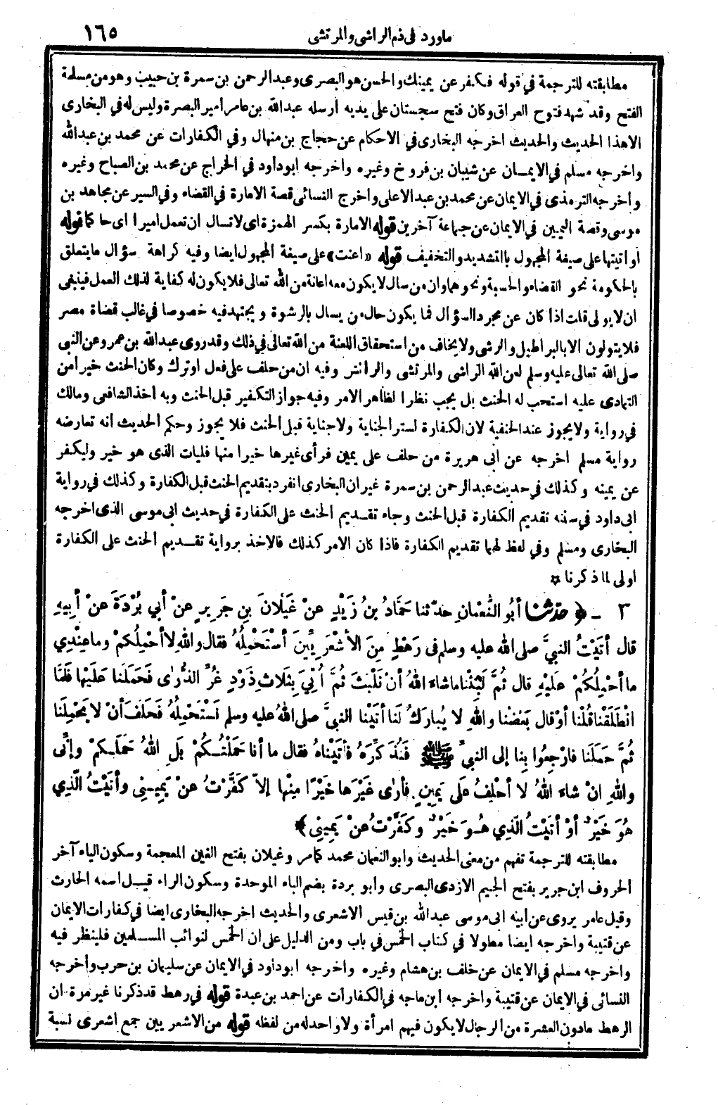وَحكم الحَدِيث أَنه تعارضه رِوَايَة مُسلم أخرجه عَن أبي هُرَيْرَة: من حلف على يَمِين فَرَأى غَيرهَا خيرا مِنْهَا فليأت الَّذِي هُوَ خير وليكفر عَن يَمِينه، وَكَذَلِكَ فِي حَدِيث عبد الرَّحْمَن بن سَمُرَة، غير أَن البُخَارِيّ انْفَرد بِتَقْدِيم الْحِنْث قبل الْكَفَّارَة، وَكَذَلِكَ فِي رِوَايَة أبي دَاوُد فِي (سنَنه) تَقْدِيم الْكَفَّارَة قبل الْحِنْث، وَجَاء تَقْدِيم الْحِنْث على الْكَفَّارَة فِي حَدِيث أبي مُوسَى الَّذِي أخرجه البُخَارِيّ وَمُسلم، وَفِي لفظ لَهما تَقْدِيم الْكَفَّارَة فَإِذا كَانَ الْأَمر كَذَلِك فالأخذ بِرِوَايَة تَقْدِيم الْحِنْث على الْكَفَّارَة أولى لما ذكرنَا.