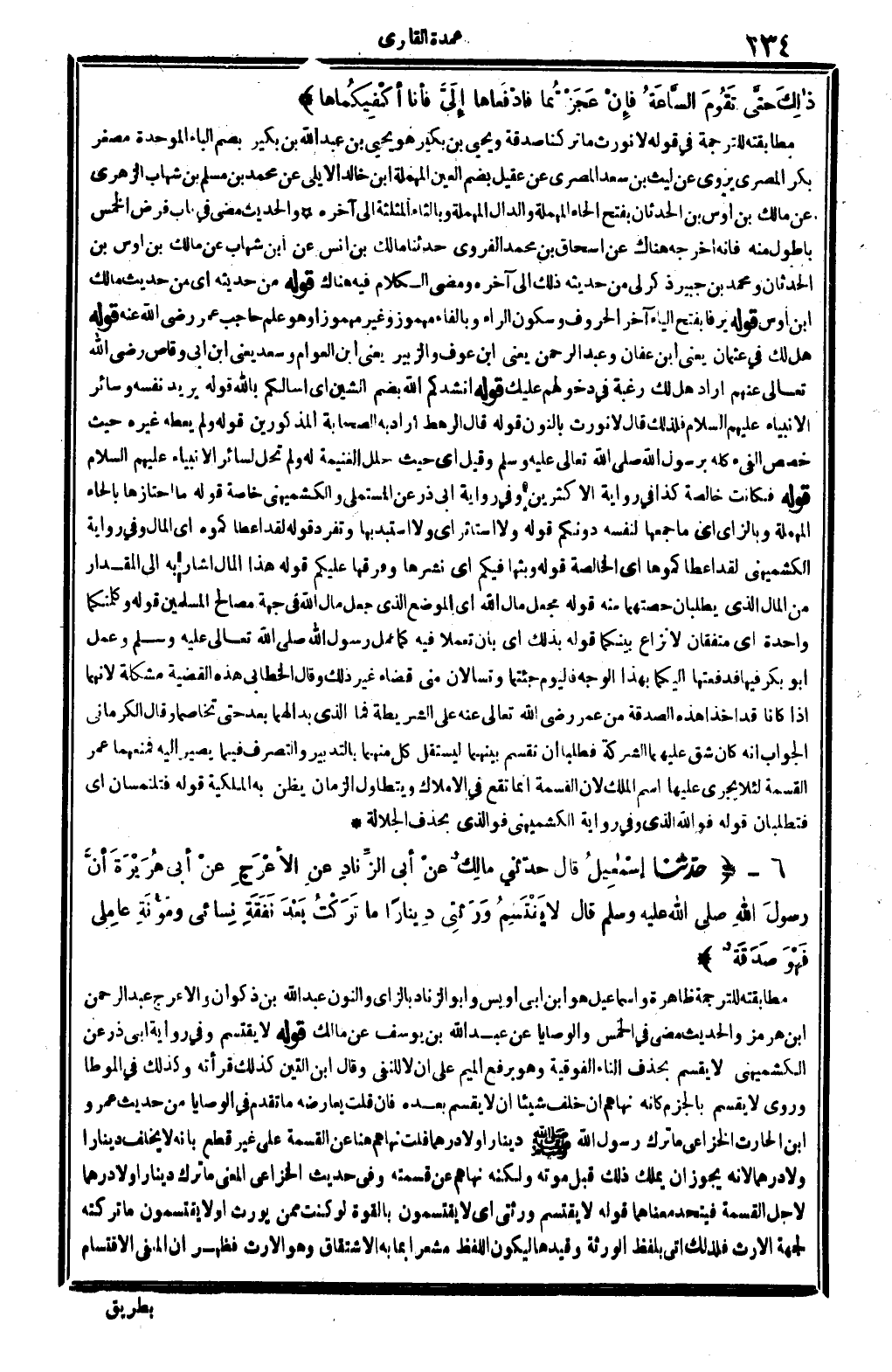 9276 - حدّثنا إسْماعِيلُ قَالَ: حدّثني مالِكٌ عنْ أبي الزِّنادِ عنِ الأعْرَجِ عنْ أبي هُرَيْرَةَ: أنَّ رسولَ الله صلى الله عَلَيْهِ وَسلم قَالَ: (لَا يَقْتَسِمُ وَرَثتِي دِيناراً، مَا تَرَكْتُ بَعْدَ نَفَقَةِ نِسِائِي ومَؤُونَةِ عامِلِي فَهُوَ صَدَقَةٌ) . (انْظُر الحَدِيث 6772 وطرفه) .
