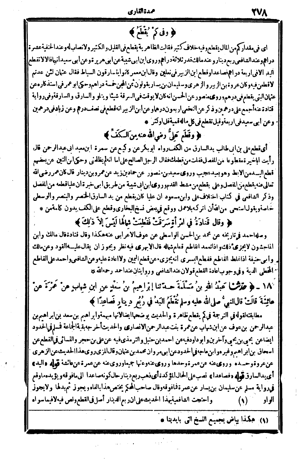 وقَطَع عَلَيٌّ رَضِي الله عَنهُ مِنَ الكَفِّ.