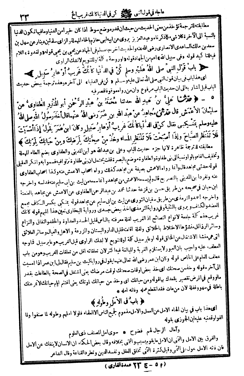 3 - (بابُ قَوْلِ النبيِّ صلى الله عَلَيْهِ وَسلم: (كُنْ فِي الدُّنْيا كأنَّكَ غَرِيبٌ أوْ عابِرُ سَبِيلٍ))